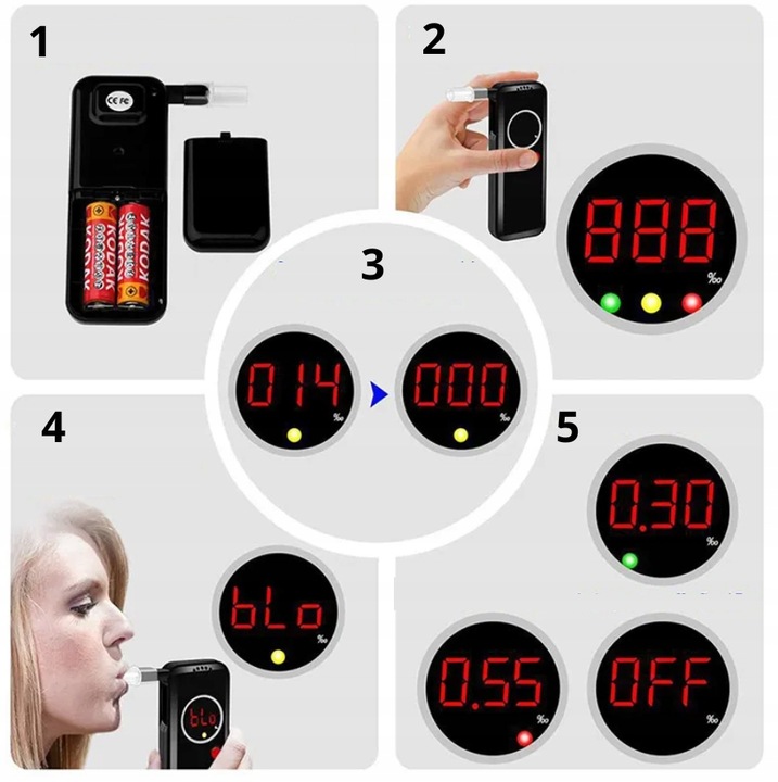 - Wynik stężenia alkoholu w organizmie wyświetla się na wyświetlaczu.