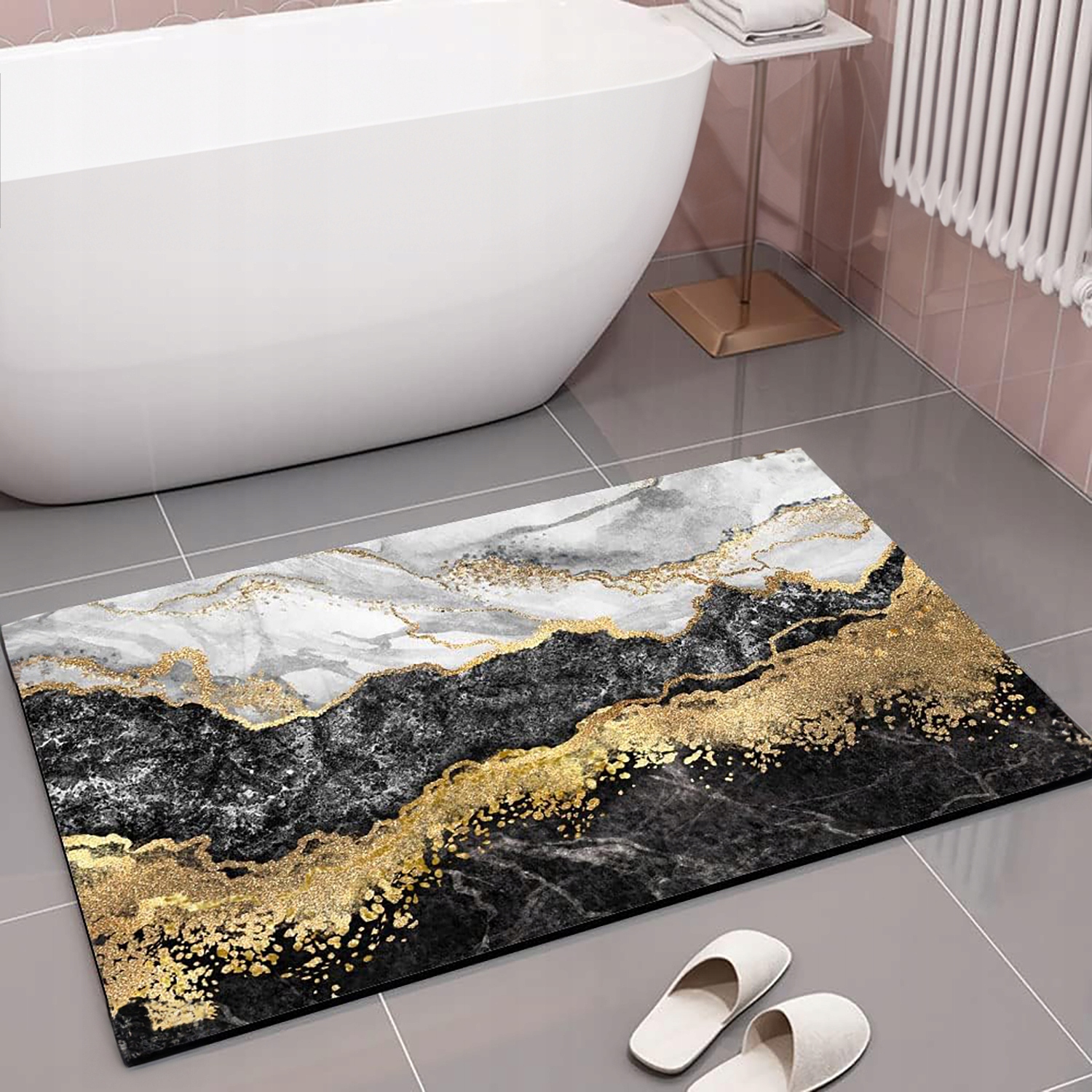 Przywróć blask swojej łazienki z naszą ekskluzywną matą podłogową w efektownym wzorze marmuru z złotymi akcentami! To więcej niż tylko mata - to prawdziwa dekoracja Twojej łazienki! �