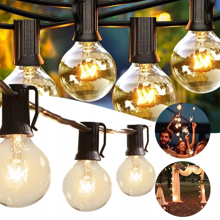 LAMPKI OGRODOWE WISZĄCE GIRLANDA DO OGRODU DŁUGA 30M 30 ŻARÓWEK DEKORACYJNE