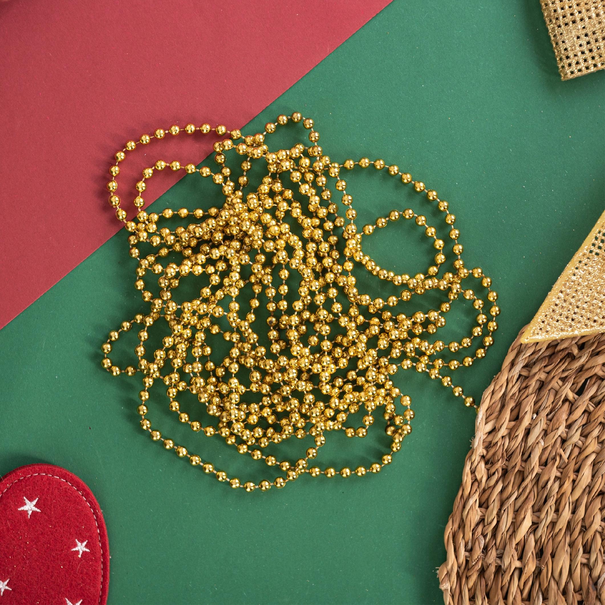 ŁAŃCUCH KORALE NA CHOINKĘ koraliki girlanda Z KULEK 5m złota SZPULA