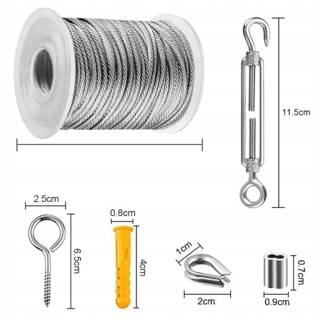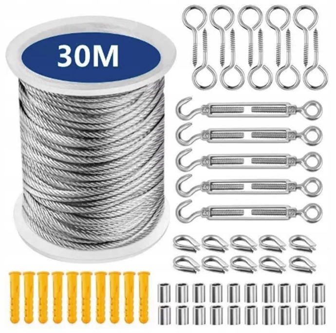 Linka stalowa ocynkowana nierdzewna lina 30m 56W1 zestaw do montażu