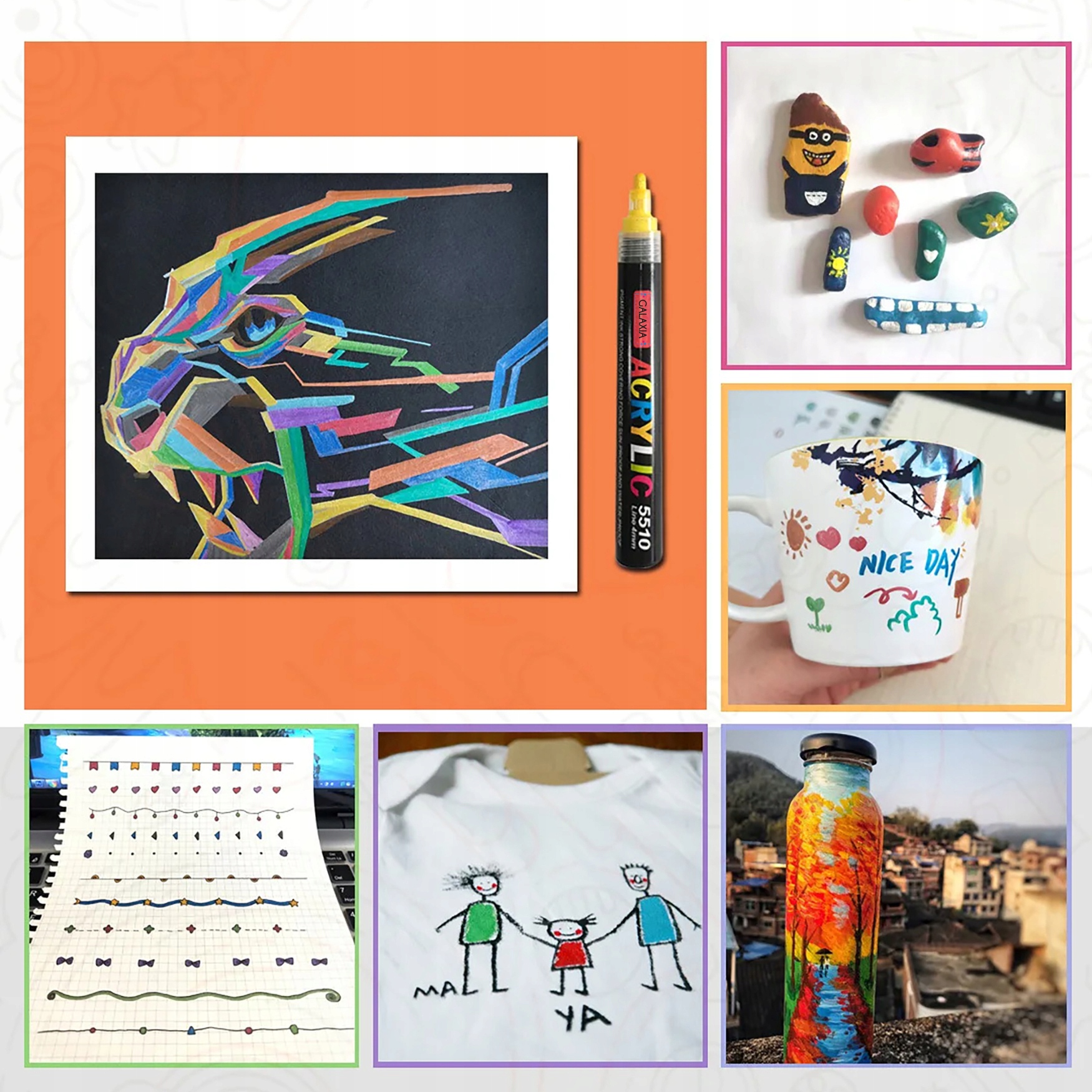 Wodoodporne markery akrylowe do kamienia, szkła, papieru, karty podarunkowej, drewna, butów, albumów ze zdjęciami DIY☀️