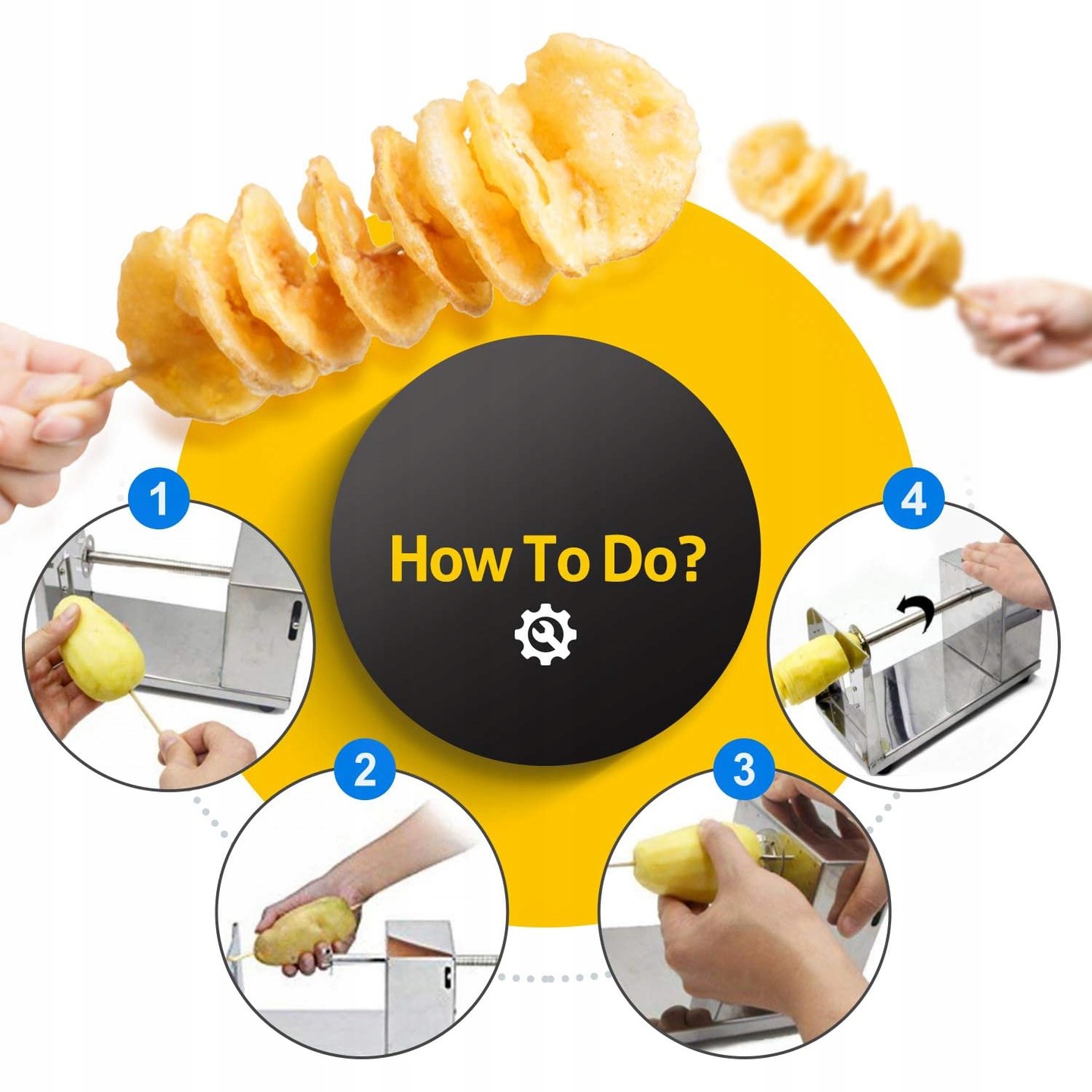 Maszynka jest przystosowana do zrobienia w kilkanaście sekund zakręconego produktu, który wystarczy usmażyć we frytownicy.