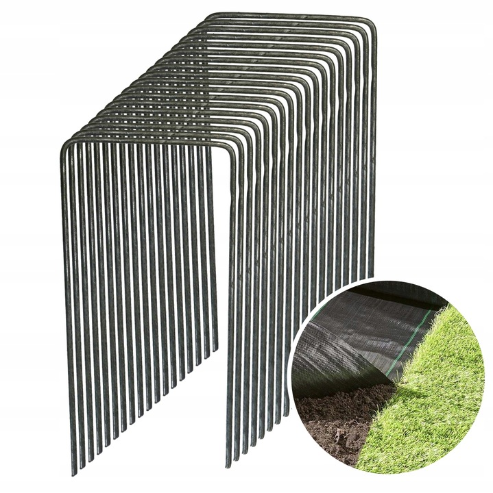 Szpilki wykonane z wytrzymałej, nierdzewnej stali ️ gwarantują odporność na warunki atmosferyczne oraz długotrwałe użytkowanie. Idealnie nadają się do mocowania agrowłókniny, agrotkaniny, siatek przeciw chwastom czy mat ściółkujących.