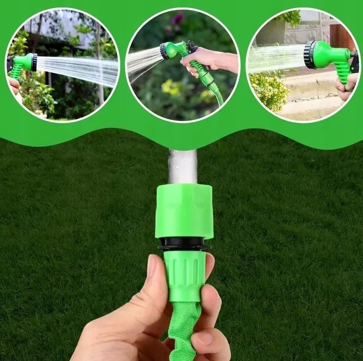 WĄŻ OGRODOWY ELASTYCZNY ROZCIĄGLIWY 25-75M + ZŁĄCZKI + PISTOLET 7 TRYBÓW