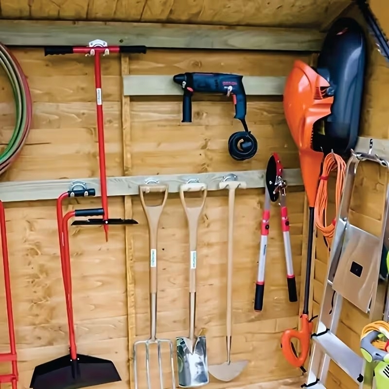 Bałagan w garażu, warsztacie lub piwnicy utrudnia pracę i zabiera czas. Ten zestaw metalowych wieszaków pozwala uporządkować narzędzia w prosty i trwały sposób. Po montażu każde narzędzie ma swoje stałe miejsce i jest zawsze pod ręką.