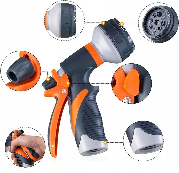- ? Typ: Pistolet do węża ogrodowego + zraszacz wielofunkcyjny